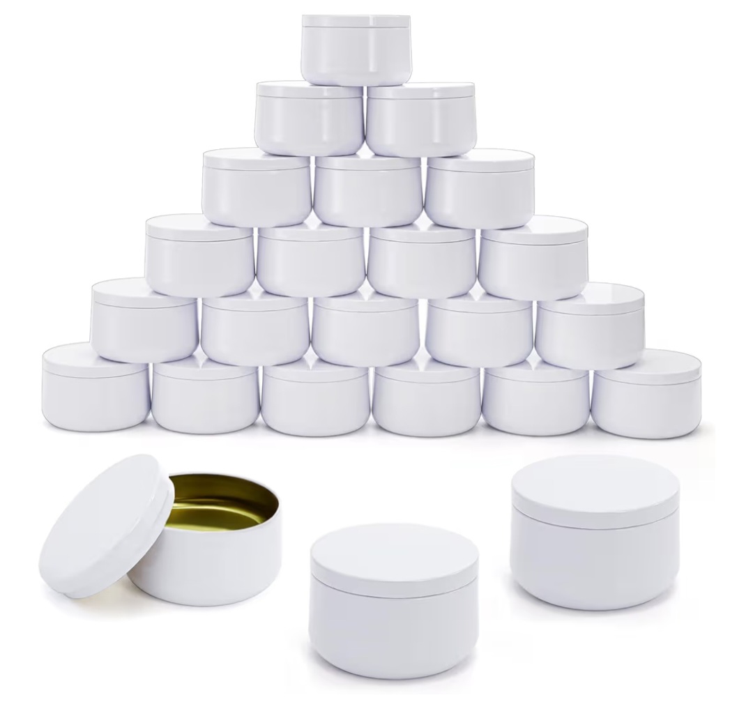 We are adding new items. For people who love glass candles. We offer 4 oz, 6 oz, 8 oz and fancy 10 oz jars. We will be adding new tins for people who love tin jars. We have already 4 oz tins. 6 oz tins. Coming soon…  8 oz tins, and 10 oz tins…